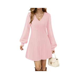 17-Womens V Neck Long Sleeve Cable Knit Fall Dresses